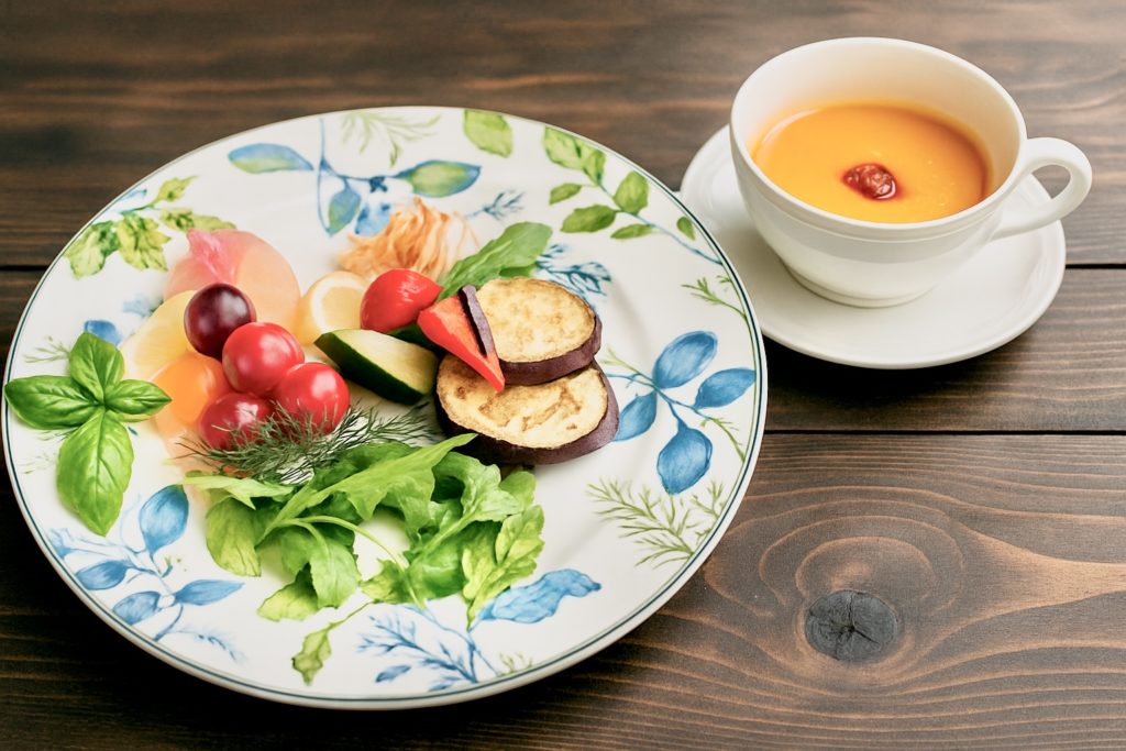 海を眺めながら、旬の野菜と果物を味わうひととき。